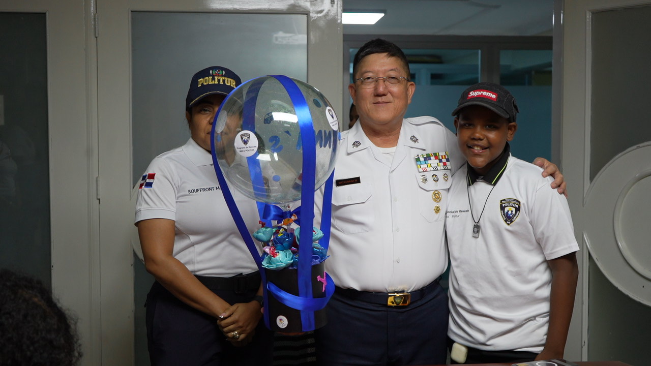 Nuestro director Central de la Policía de Turismo, general Minoru Matsunaga, P.N., recibió con alegría un hermoso regalo de parte de los niños, niñas y adolescentes del Programa de Sociales y Rescate de NNAs de POLITUR.