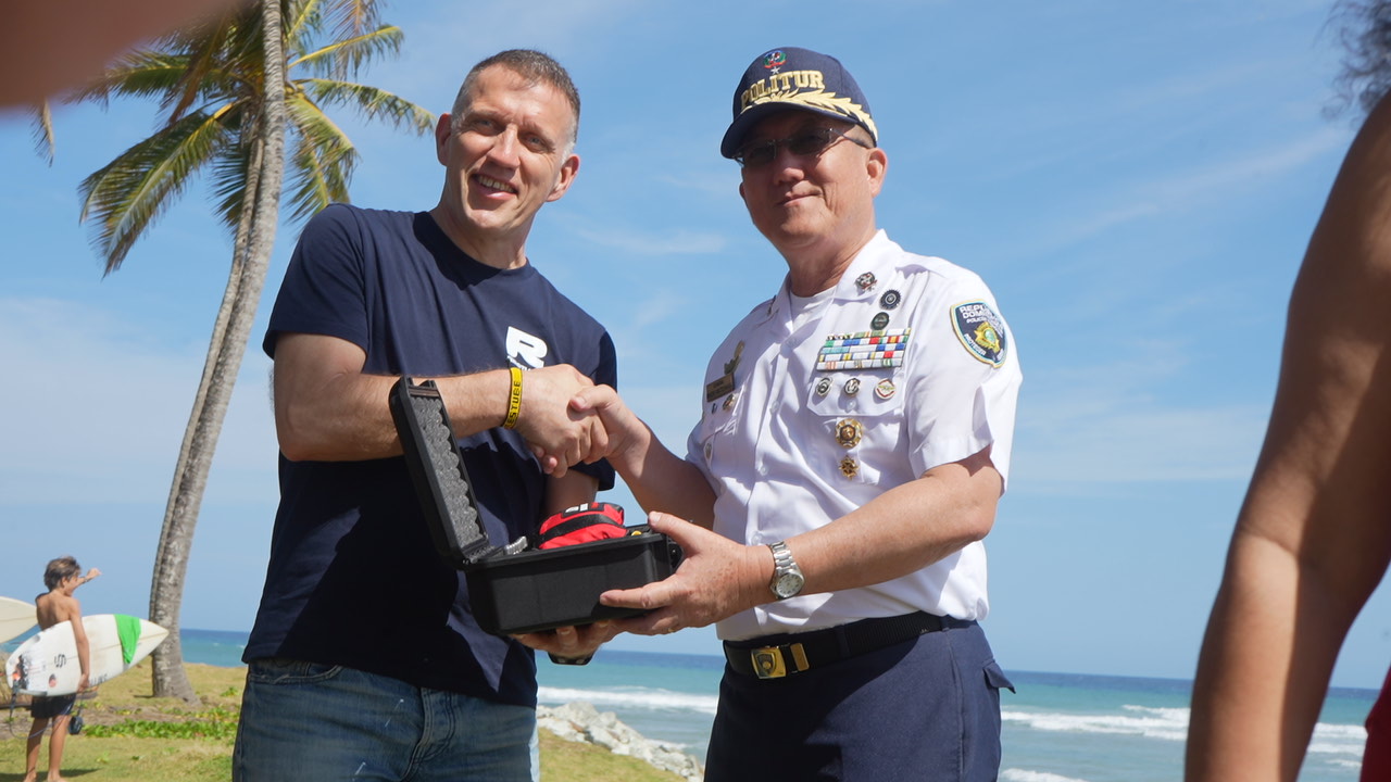 El Director Central de la Policía de Turismo (POLITUR), General Minoru Matsunaga, P.N., recibió la donación de equipos de seguridad acuática por parte de la empresa alemana Restube, así como 20 becas de certificación en socorrismo otorgadas por la fundación